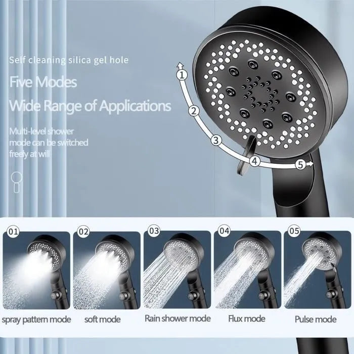 Customizable shower with 5 modes: Switch from a relaxing spray to a fine mist or an energizing massage with a simple touch. Whether you need a refreshing wake-up call in the morning or deep relaxation in the evening, choose the mode that suits your mood and let each shower revitalize you.
